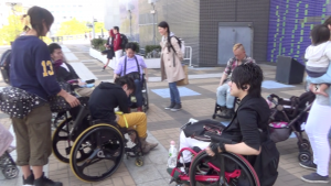 親鴨についていくヒヨコのように列をなして進む車いす御一行(笑)[/caption]